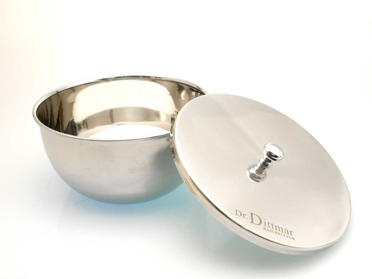 EXTRA GROß קערת סבון גילוח מפלדת אל-חלד עם מכסה כולל סבון Dr. Dittmar גרמניה