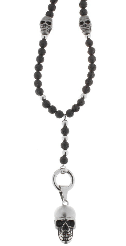 שרשרת גברית ענקית גולגולות אבן לבה פלדת אל חלד עם תליון חסידה תכשיטים