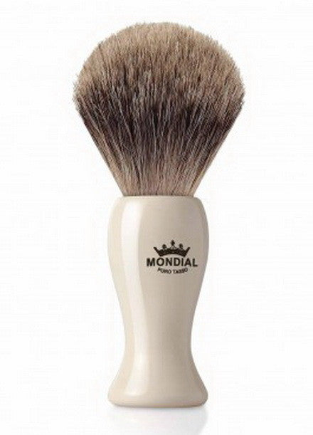 注意:これはシルバースピッツタヌキ毛ではありません。このブラシはMondialで「Best Badger」と呼ばれるシルバーツマミタヌキ毛を使用しています。