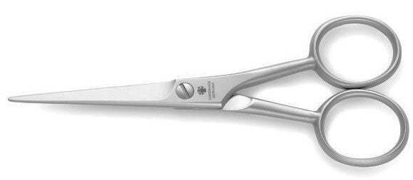 Dette instrumentet er laget av rustfritt stål av typen 1.4034. Metalllegeringen viser god korrosjonsbestandighet mot såpe eller vanndamp og er derfor ideell for produksjon av høykvalitetssakser. I tillegg har materialet god skjærekantbestandighet og kan slipes presist. Den matterte overflaten føles svært eksklusiv og kan også gripes sikkert med våte hender.