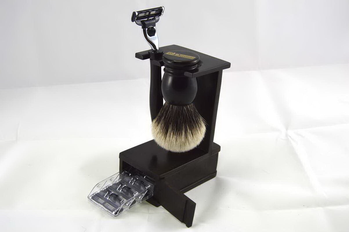 EBENHOLZ barberingssett kost grevling 2-bånd silberspitz barberhøvel Dr. Dittmar Tyskland