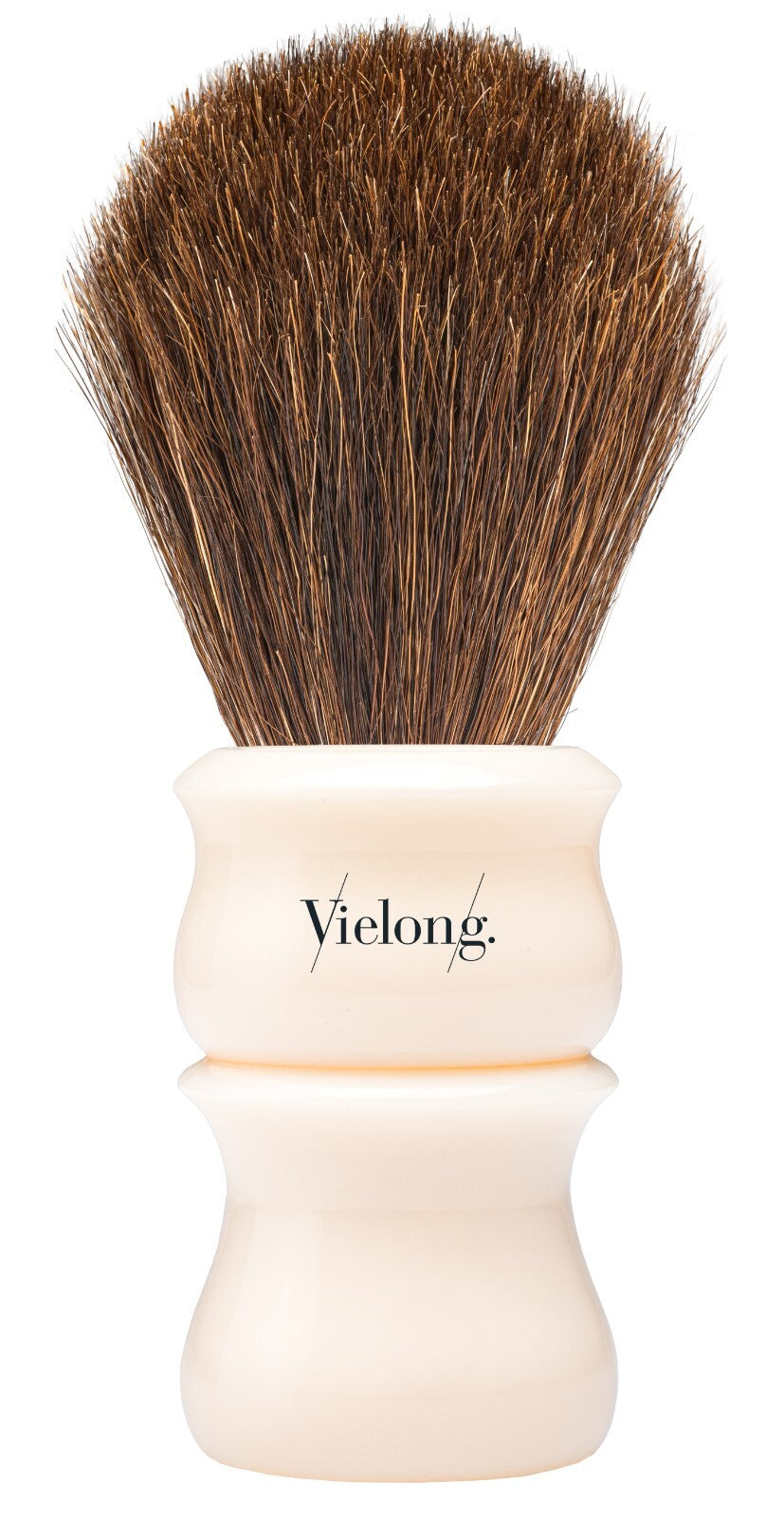 Brunt hestehår tilbyr, takket være den omfattende prosessen Vie-Long bruker på tuppene, en utmerket kombinasjon av fast hår og myke tupper. Hestehår gir svært god vannlagring.