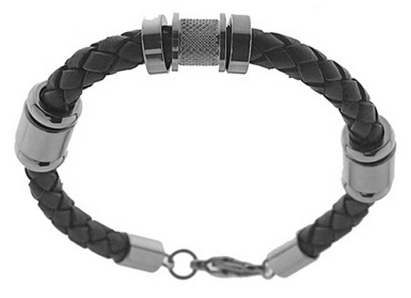 Herrearmbånd STORCH SCHMUCK laget i Tyskland LÆR flettet brun RUSTFRITT STÅL