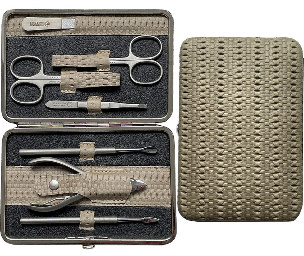 7 parçalı Manikür Seti gerçek DERİ ÖRGÜ DESENİ INOX Manikür Seti RICHARD JÄGER