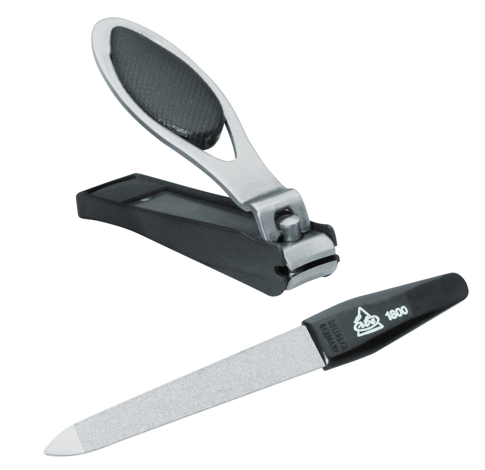 2 adet paslanmaz çelikten yüksek kaliteli manikür aleti: Tırnak makası tırnak tutuculu, safir tırnak törpüsü.