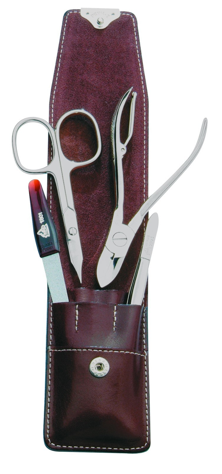 BECKER-MANICURE Erbe Solingen 4 parçalı Manikür Seti Erkekler için Deri Manikür Kutusu