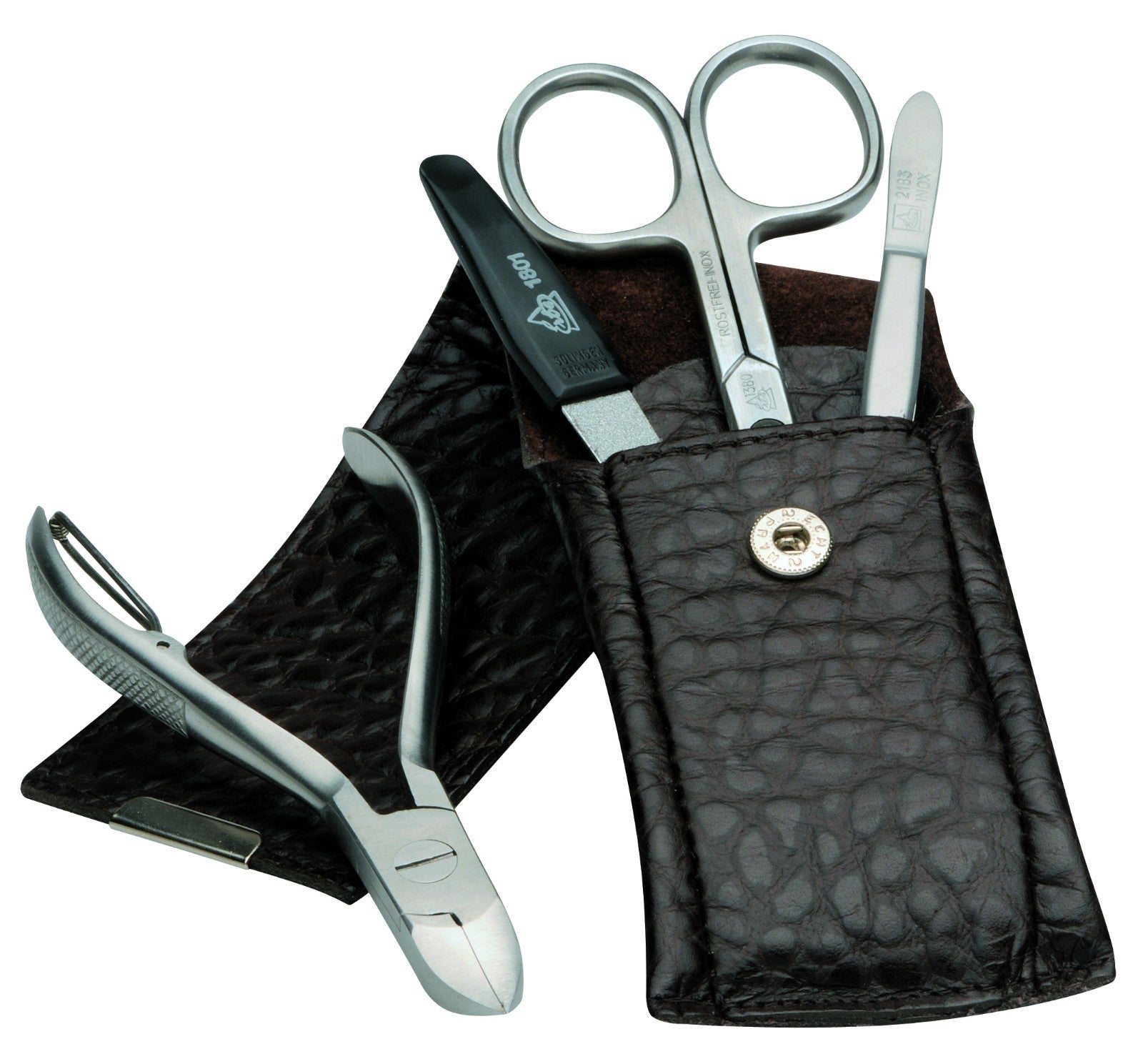 BECKER-MANICURE Erbe Solingen 4 parçalı Manikür Seti Erkekler için Deri Manikür Kutusu