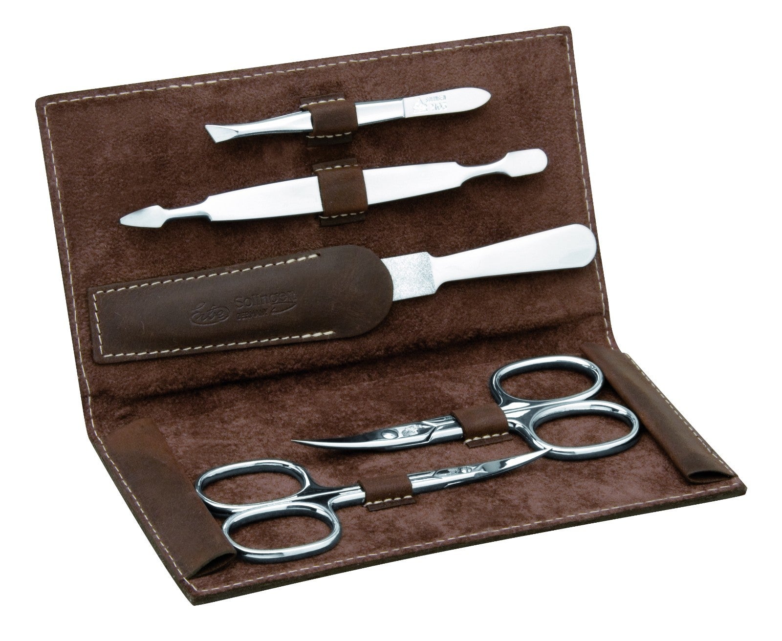 BECKER-MANICURE Erbe Solingen 5 parçalı Manikür Seti Erkekler için Deri Manikür Kutusu