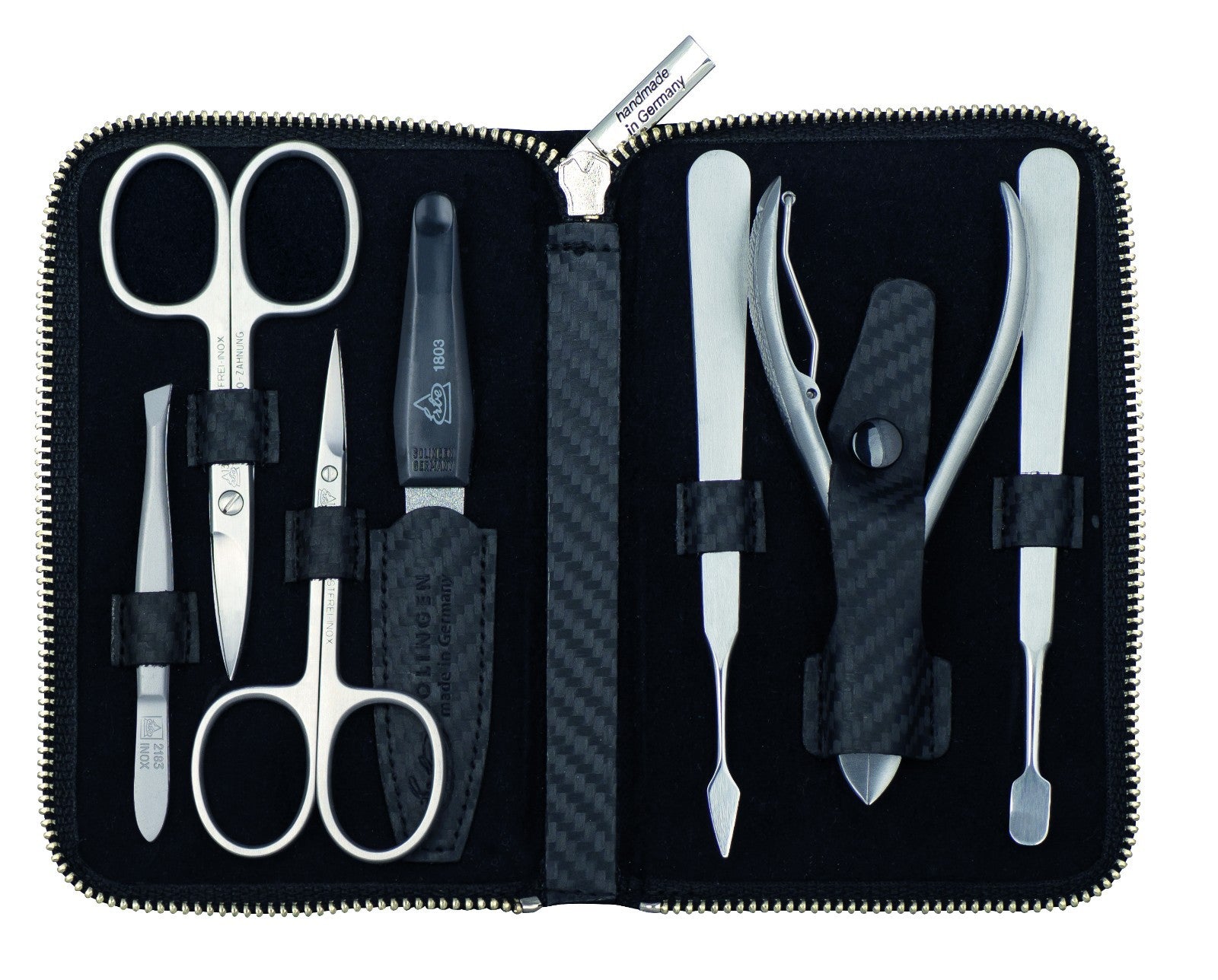 BECKER-MANICURE Erbe Solingen 7 parça Set Manikür Çantası Seri CARBON Erkek Deri