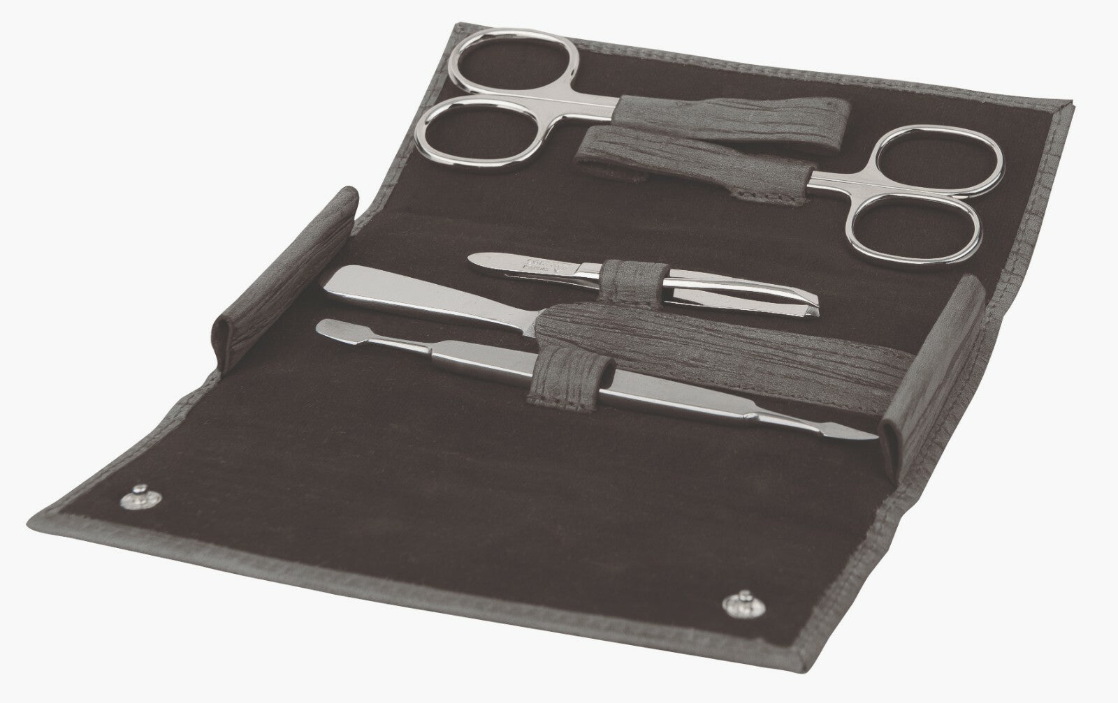 ECKER-MANICURE Erbe Solingen 5 parçalı Set Manikür Çantası AHŞAP GÖRÜNÜMLÜ Erkek Deri