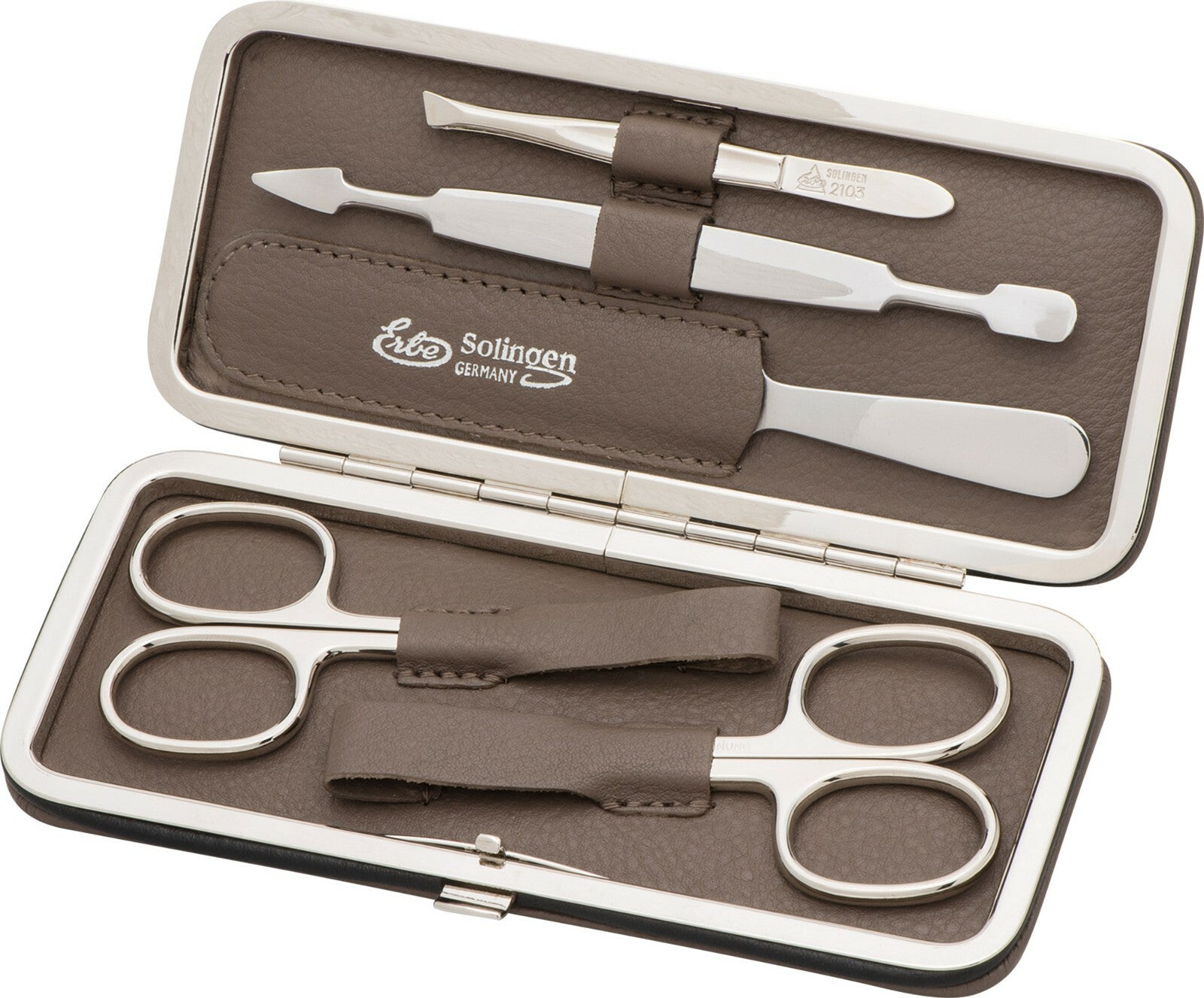 Erbe Solingen TAUPE GERÇEK DERİ Manikür Seti Manikür Kılıfı Erkekler BECKER-MANICURE