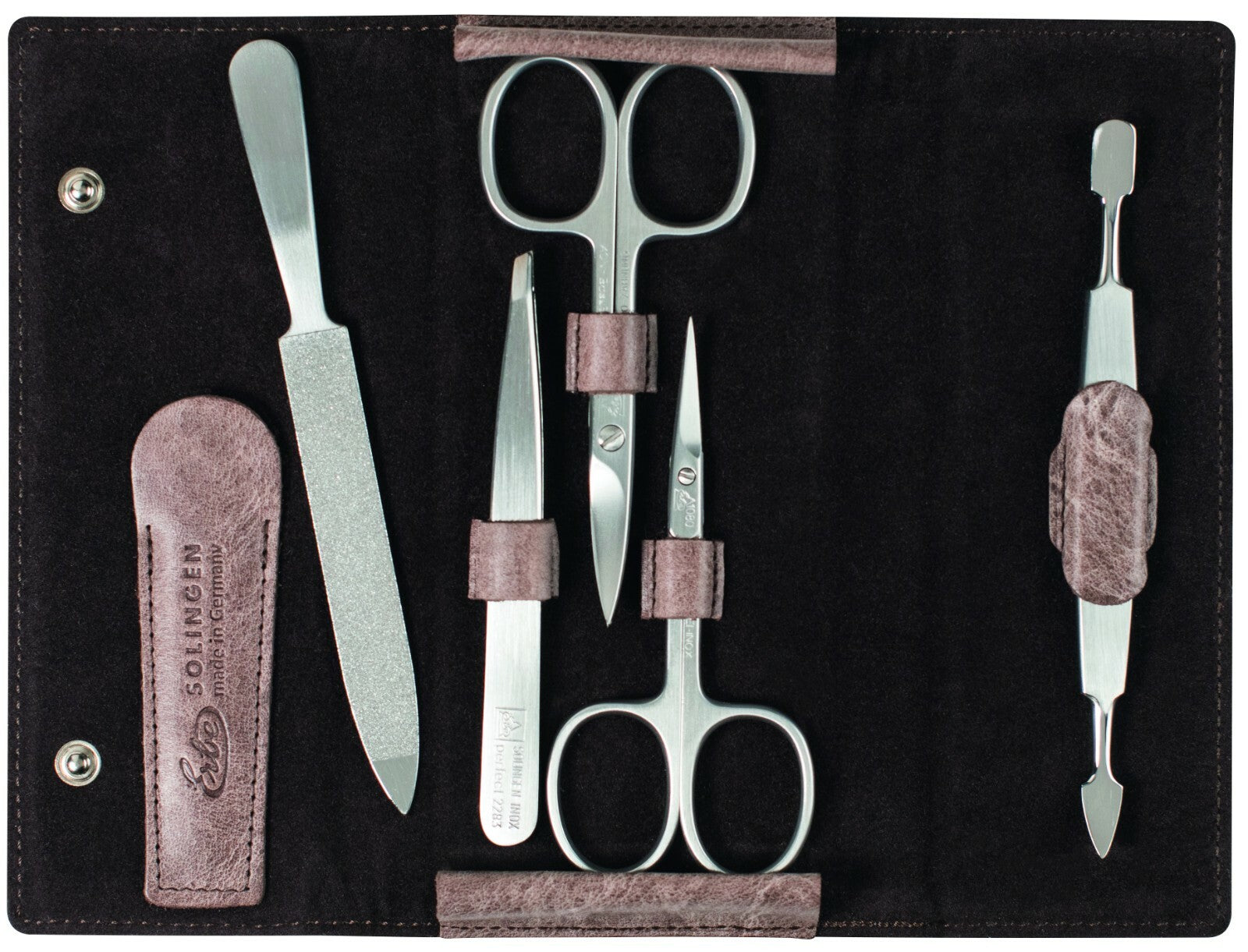 Manikür Seti Deep Desert DERİ Taupe PASLANMAZ ÇELİK - BECKER-MANICURE Erbe Solingen